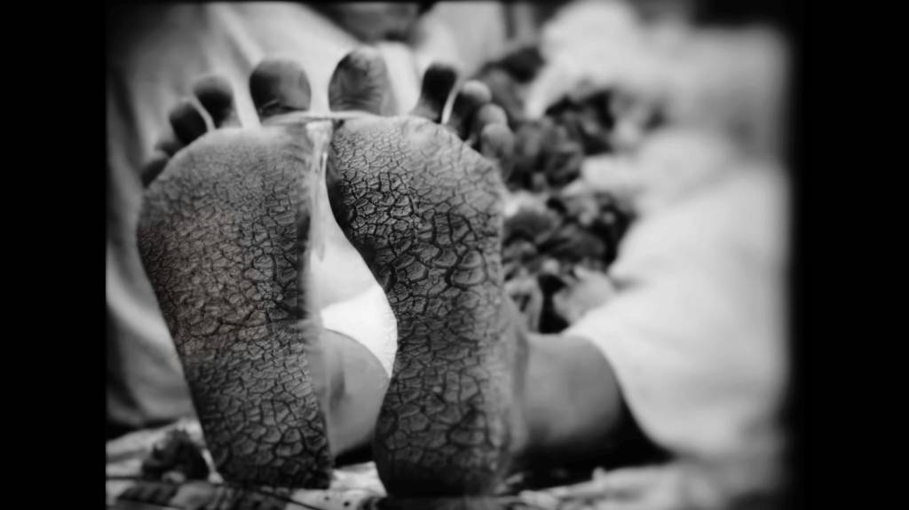 இறந்த தந்தையின் பாதத்தில்