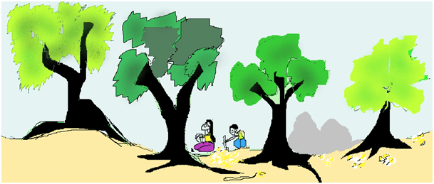 அந்த அப்பா அம்மா நாள்தோறும் விறகு வெட்டிச் சென்று கடையில் கொடுத்து ஒரு கராண்டுகம் (அளவில் சிறியது) அரிசி வாங்கி வந்து தம் குழந்தைகளுக்குச் சமைத்துத் தருவர்.அவ்வூரில் ஒரு பெரிய பாம்பும் இருந்தது. அந்தப் பாம்பு நாள்தோறும் வேட்டைக்குச் செல்லும் வழியில் அந்த அழகிய பெண்ணின் தம்பிகள் நகரப்பழத்தின் இலையையும் அத்திப்பழத்தின் இலையையும் கொண்டு போய் குவித்து வைத்து விளையாடுவர்.