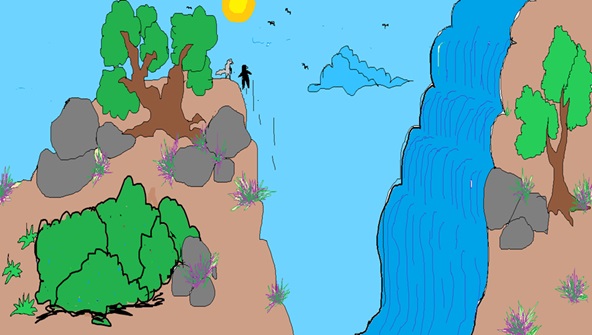 ஒரு சிறிய கல்லில் ஏறி நின்று வெரிகு கண்ணும் காலும் வருட்டே எனக் கூறி குதித்து தரையில் நின்றது. ஆஹா! சங்ஙாதி எனக்குக் கண் வந்துவிட்டது நீயும் வா வந்து குதி என்று சொன்னது. அதோடு கரடியைக் கூட்டிக் கொண்டு போய் அருவியின் விளிம்பில் நிறுத்தியது. கரடியிடம் சங்ஙாதி நீ இனி கண்ணும் காலும் வருட்டே எனக் கூறி குதித்து விடு என்றது.
